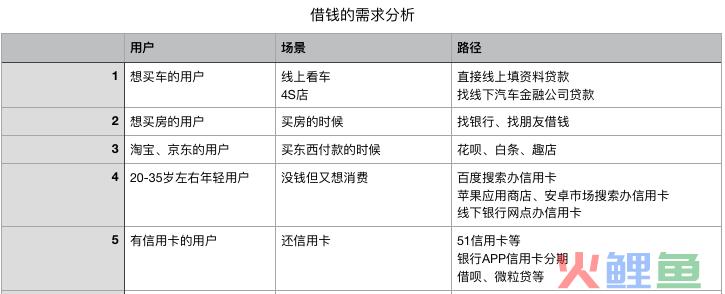 再讲一个需求,比如用户贷款。用户一般会在什么场景下要去贷款?