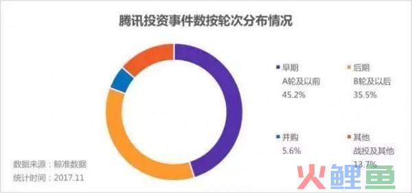 腾讯的投资偏好非常明显,要么赶早、要么抄底。过去7年的投资事件中,45.2%属于早期投资,其次是战投及其他。