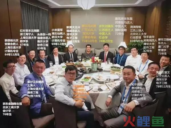 这个"朋友圏",以小马哥为首,顺时针数依次是——腾讯马化腾、京东刘强东、高瓴资本张磊、滴滴程维、快手宿华、摩拜王晓峰、美团王慧文、知乎周源、58姚劲波、金沙江朱啸虎、京东金融陈生强、联想杨元庆、红杉资本沈南鹏、今日头条张一鸣、小米雷军、美团王兴,共计16人。