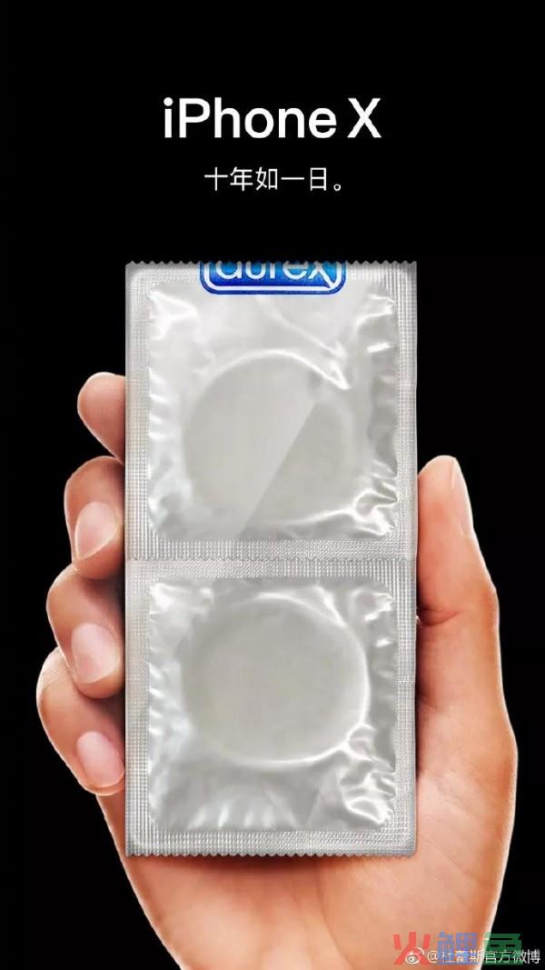 iPhoneX发布时,杜蕾斯也是直接使用的这种方式进行文案创意。