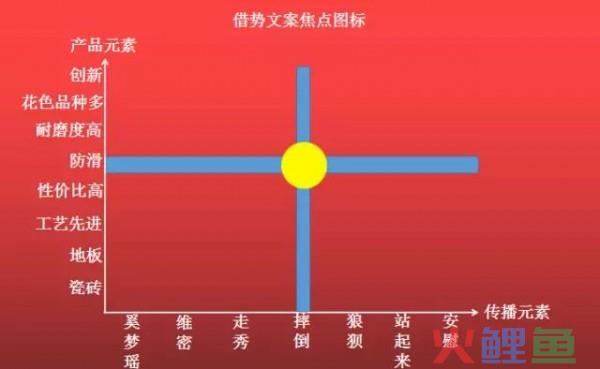 最后一步,将热点的传播元素和与产品元素相交叉,就可以得到一个文案写作的创意核心——冠珠陶瓷防滑,不会摔倒。