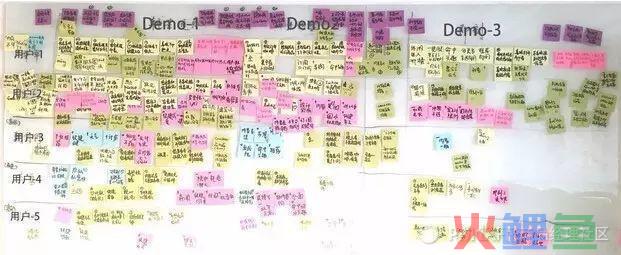 团队每个人都会认真学习访谈的信息,并把自己对每个用户的行为和特征的观察记录下来。下面就是我们团队 6 个人对 5 个用户的观察记录。