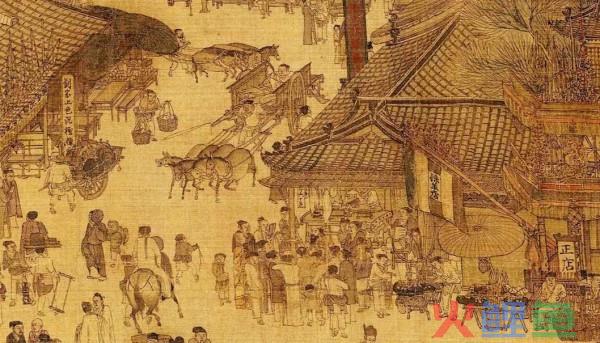 而在北宋时期的名画《清明上河图》中,集中描写了北宋东京繁华的街市景象,里面的悬挂式广告随处可见,其中广告幌子有10面,广告招牌有23块,灯箱广告至少有4个,大型广告装饰———彩楼欢门有5座,总计42处广告。