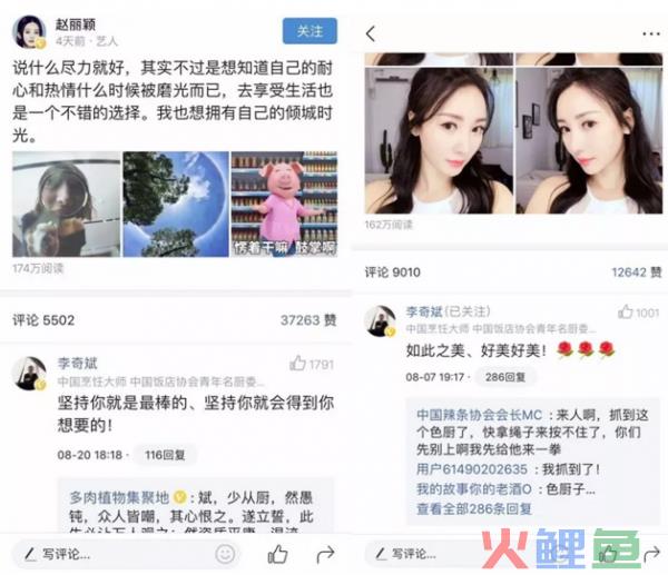 有这么一位草根厨师李奇斌,因为每一条女明星、女模特的微头条下都有他评论的身影,离奇地火了,许多用户自发发起了活捉厨子运动,还获得了「头条一哥」的称号,一个草根做到了 88 万粉丝,非常成功。