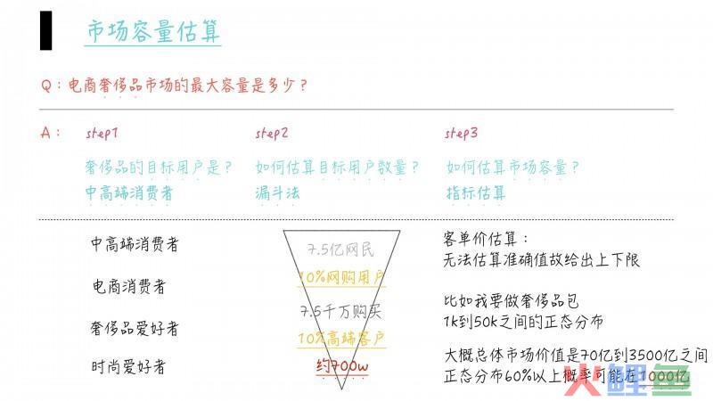 当然实际的市场评估还是要进行行研,这个估算法只是为了在进行面试、设计或简单判断时能有所依托,大家不妨平时多多练习,这样下次遇到陌生的行业也能做到心里有底。