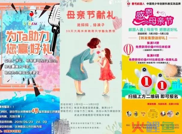 3)新用户参加集赞活动后,流量闭环基本形成,裂变开始滚动,而老用户达到集赞要求后,截图给发起者领取奖励即可。笔者所在的教育行业,就有很多机构用这种方式进行获客,多是借助热点型节日或者高福利活动进行裂变传播,效果看起来不错。