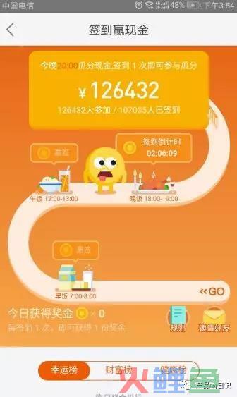 通过签到瓜分奖金给用户提供了一个每天(多次)打开APP的理由,同时这种低成本薅羊毛的事情也很适合好友之间的互相传播。