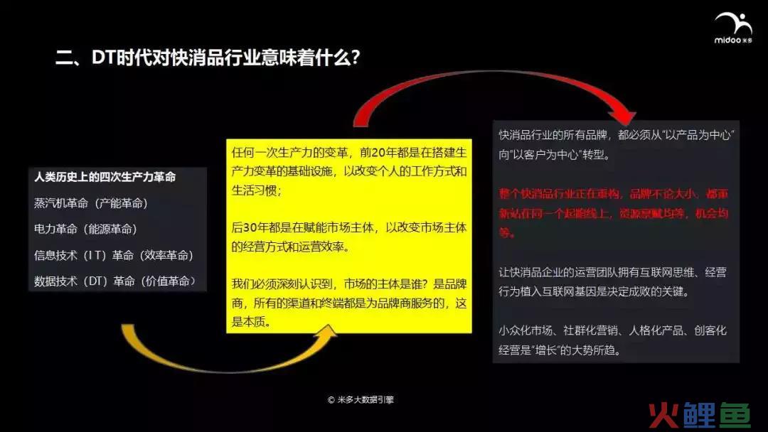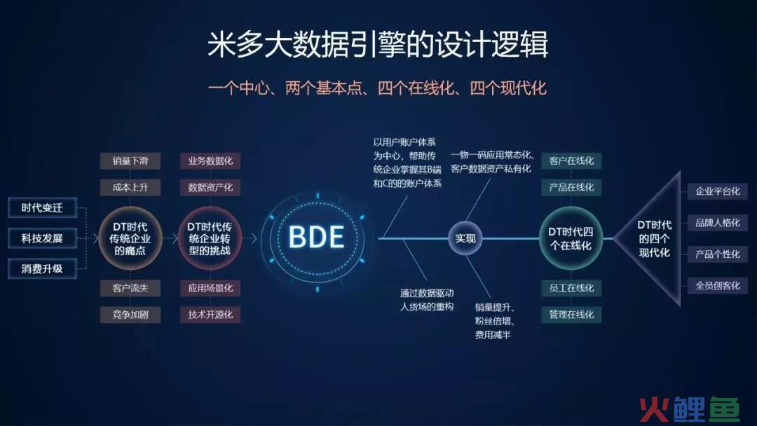 他把传统企业比作“马拉劳斯莱斯”,外表豪华却没有发动机。马吃草拉出的只是一份财务报表,企业(市场部)无法获得实时、动态的用户数据并进行实时动态的判断。来自各个平台的流量则是劳斯莱斯的“油”,把马换成数据引擎才能驱动“油”(流量)转化成“利润”。
