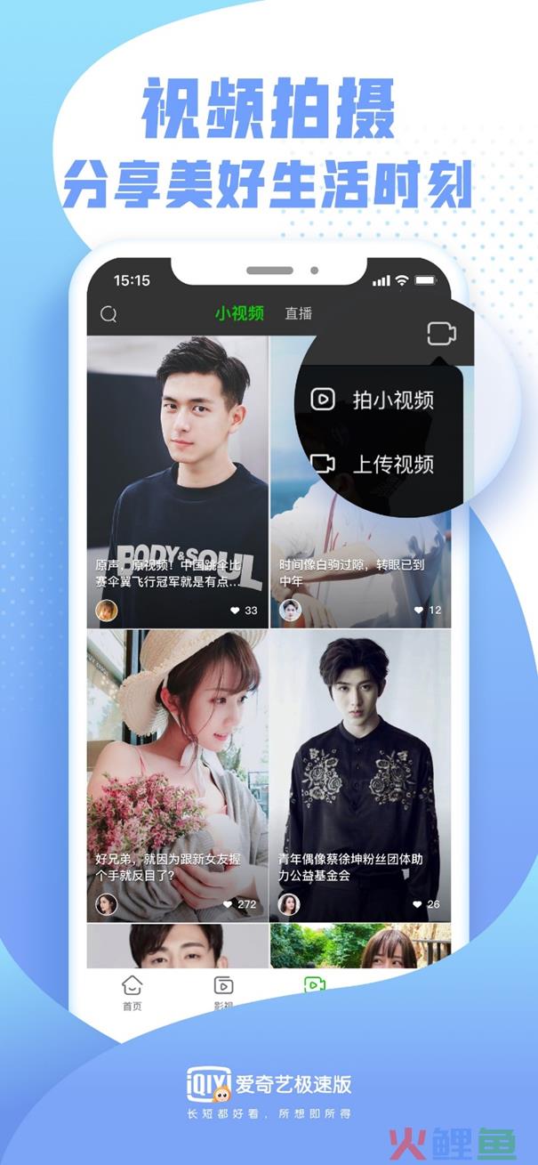 背靠爱奇艺海量、优质的影视综资源资源,爱奇艺极速版APP在“长短视频”融合方向的探索更加深入。在产品版本迭代上,爱奇艺极速版也在不断进行功能优化,改善用户体验。在日前更新的版本中,新增小视频拍摄功能,打开爱奇艺极速版APP,点击右上角“+”即可拍摄或上传小视频,分享生活美好时刻。同时,直播频道也已上线,颜值主播可在线与用户互动。用户还可以通过弹幕,在看剧看综艺视频内容时,一起在线狂欢。