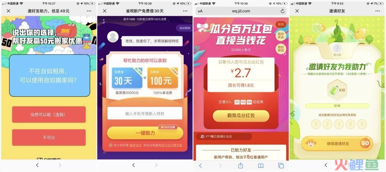 可以毫不夸张地说,“好友助力”几乎是每一个App/小程序的拉新标配。这一版块基本上目前市面上最主流的、各种形式的好友助力玩法(加速/集卡/点赞)都封禁了。