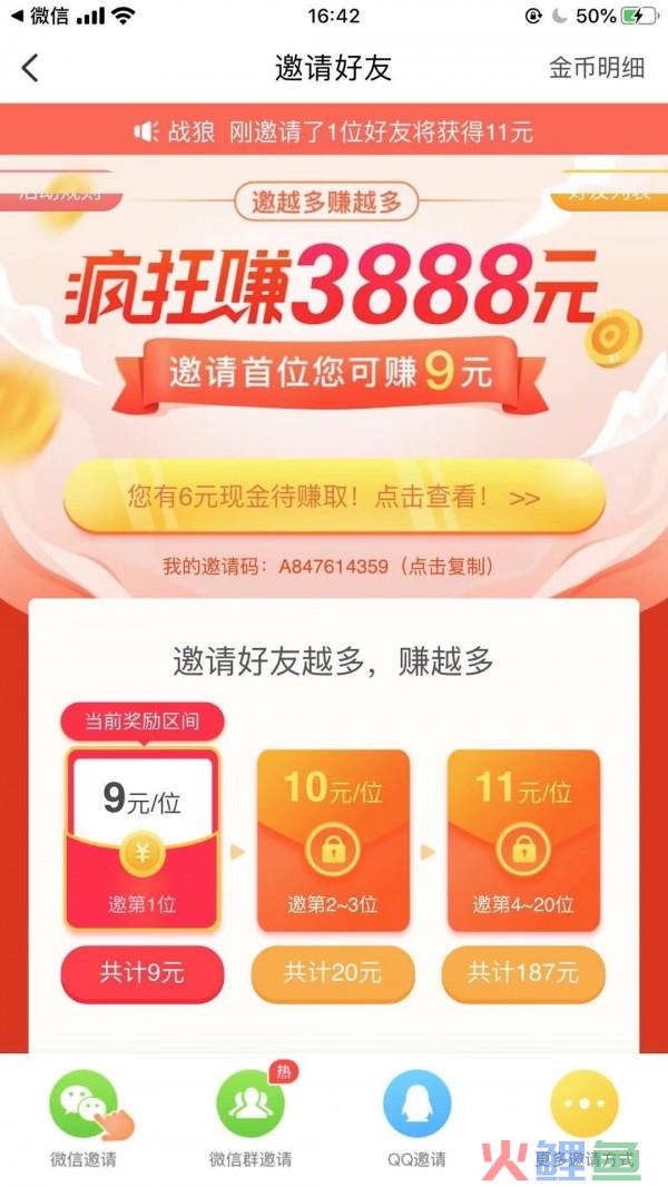 下载趣头条后,你能收到1元的红包奖励,然后每邀请一位好友下载并使用趣头条,你就能得到9元红包,靠拉人头来获取报酬,邀请越多就赚的越多。