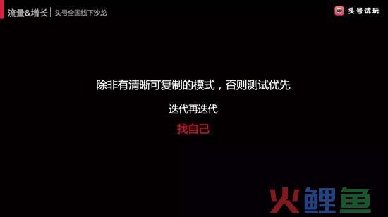 还有一个点就是,迭代再迭代,我希望可能,我觉得大部分的运营活动,爆款的活动,一定不是一次就做成的。一定是在整个产品,可能以第一次的结果为目标,不断的迭代、更新、优化,从而到最后形成自己的一套方法论,打造自己的爆款。所以,我觉得最后一句话就是,一个总结,找自己。