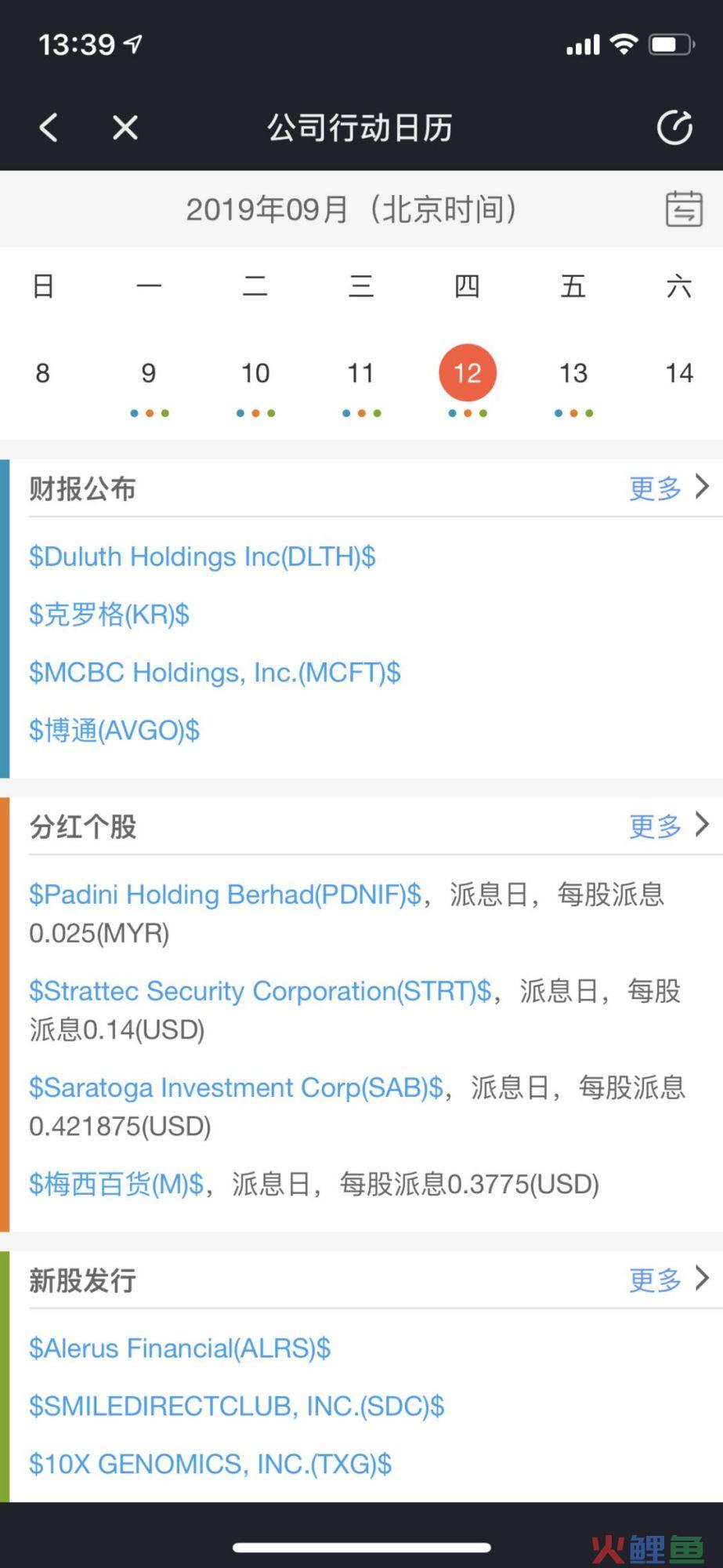 炒过股的童鞋一定知道,上市公司的股价在财报发布前后往往会发生比较大的波动,优异的公司业绩在大概率上会引发股价大幅上涨。而如果我们一个个去查找最近有哪些公司会发财报的话,就会非常费时费力。点击老虎证券app中的发现>>日历>>公司行动日历,就可以轻松了解近期有哪些公司会发布财报。