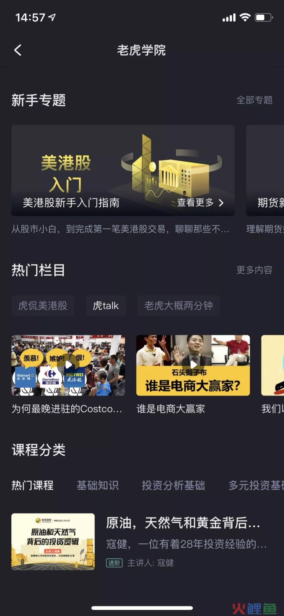 这款app最让茶馆君圈粉的功能还属“老虎学院”,老虎学院是老虎社区的重要组成部分,里面不仅有各种新手指南,还有言简意赅、干货十足的财经小视频,比如最近的《谁是电商大赢家》,就把阿里、京东、拼多多最新的财报数据、业务进展以及电商市场的整体情况都用精简的语言做了到位的分析,信息量很足,让我产生了一种炒股、工作两不误的爽感。