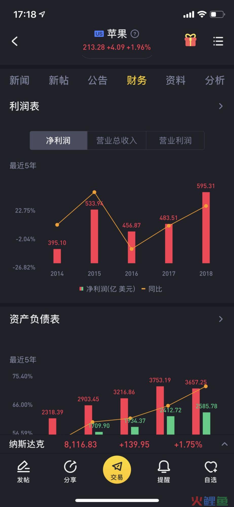 不想在股市上被割韭菜,看数据的基本功还是要练的。老虎证券app上提供的数据类别非常丰富,其中最为贴心的是,进入任何一支股票的页面,在股价曲线的下方,都可以方便地查看这支股票的各类新闻、公告,以及财务等信息。其中的财务数据让人一目了然,堪比收费类财经分析软件。