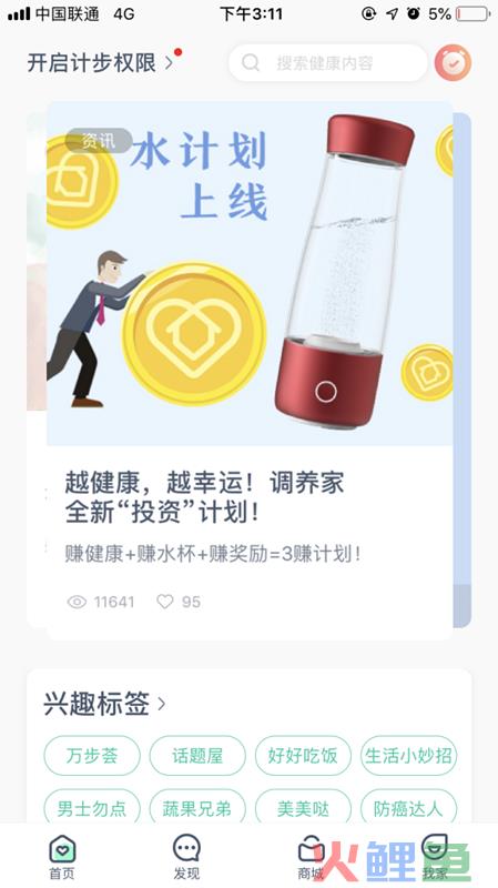 调养家也顺势推出其迈入万物互联的第一步――“水计划”,向打造一个“健康+社交”的智能健康生态圈冲刺。“水计划”指的是,通过将智能富氢水杯和调养家APP连接在一起,APP得以记录使用者每天的饮水情况,同时将这一情况同步给家庭成员以及相互关注的好友。通过“个人提醒和相互提醒”的社交功能,帮助使用者建立科学的饮水习惯,同时也让家人和朋友间的关系更加亲密。在线下,调养家还联合万步荟推出了“每天行走一万步”“公益捐赠”等活动,让线上线下的资源相互融合,全方位构建其生态圈。