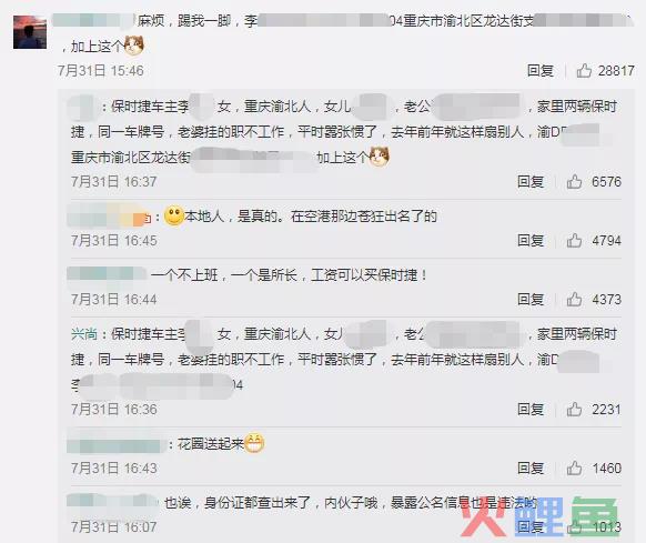 点开相关事件的评论可以发现,有网友将该女子的个人信息暴露在网络上,从姓名、身份证号、住所到亲属姓名,这早已经超出监督范围,成为了暴力的人肉搜索。