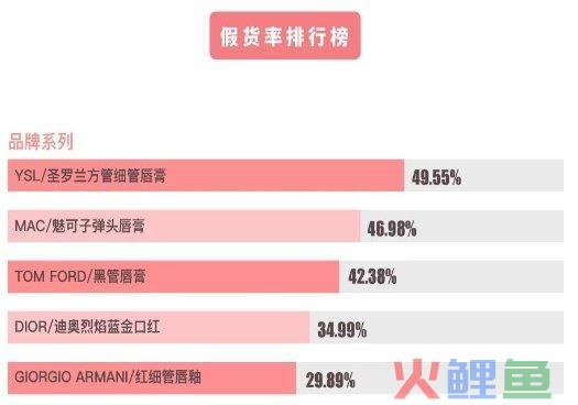 二月份鉴别报告里,美妆界的新宠儿的YSL小金条成为假货率排行榜第一名,假货率高达49.55%。另外,由于MAC版本批次繁多,存在品控等问题,所以一直是假货鉴别重灾区,在心心APP本月假货率排行中继续遥遥领先。网红带货,催生了更多不法商家,通过卖假货牟取暴利,小仙女们一定要擦亮眼睛。