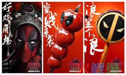 死侍2上映前的宣传海报特意添加了辨识度极高的中国文化元素(京剧脸谱、拨浪鼓、冰糖葫芦)来进行本土化,这感觉就像小贱贱突然穿上了旗袍。