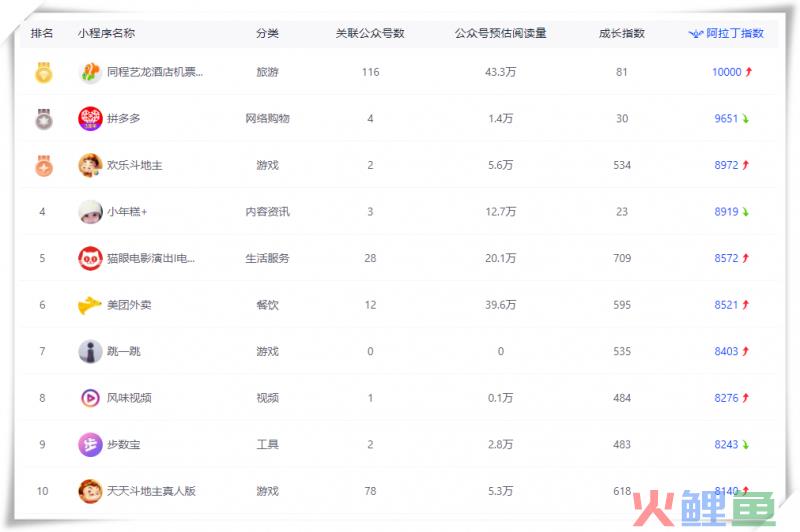 (2019年2月11日-17日,阿拉丁微信小程序排行榜)