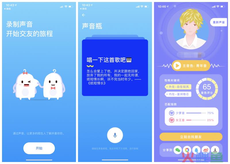 声音作为媒介,新奇好玩,比较符合陌生人社交的氛围,或许是吸引很多人下载的原因。