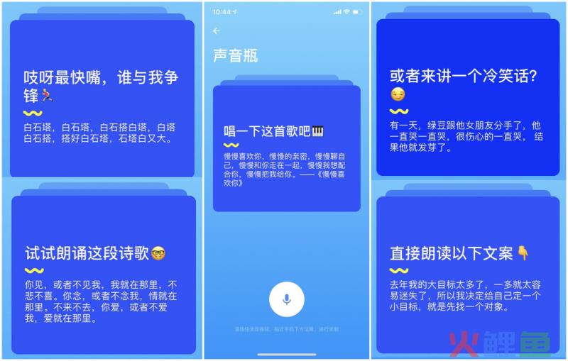 “录制声音”是该App注册的必要步骤,当然你可以尝试多次录制,也可以在使用过程中重新录制,官方会提供台词参考,比如土味情话、歌词、冷笑话等,用户也可以自由发挥,这种优先级引导让用户的尝试门槛就低了很多。