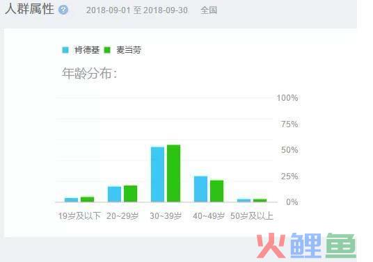 在百度统计中,从麦当劳和肯德基这两个关键词,所代表的人群年龄属性也可以看出一些端倪。时至今日,20-29岁的人群对于快餐已经兴趣不大了。有一半的用户年龄分布在30岁到39岁——没有新的血液补充对大品牌来说是致命的。就在我们身边,大家对于快餐的热度已经逐渐下降,新的饮食理念和健康理念不断涌现,年轻人喜欢吃快餐的已经不多了。