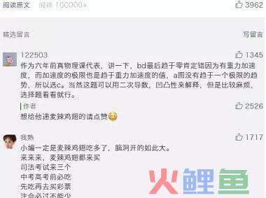 而麦当劳目的是为了提升双微的粉丝数,促进粉丝活跃。因此此文的目标用户是活跃在网络上的这批人,他们对营销的各种套路已经了熟于心。因此对于内容质量要求更高,尤其在意创新度和参与感。答题与评论相对于硬广告文案拥有更好的阅读和互动体验。这样做的结果也是显而易见,为了一道物理题,评论已经忙的不可开交了。