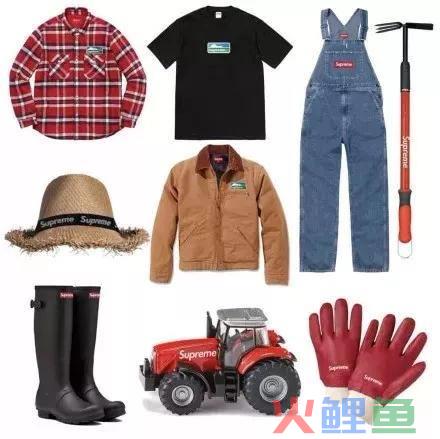 不仅国内如此,近日,美国潮牌Supreme因为新logo“撞脸”猪肉大厂Farmland,被网友恶搞出“耕田九件套”乡村套装,好好的一个潮牌在用户的集体YY中走进田间地头,让美国网友们玩得不亦乐乎。