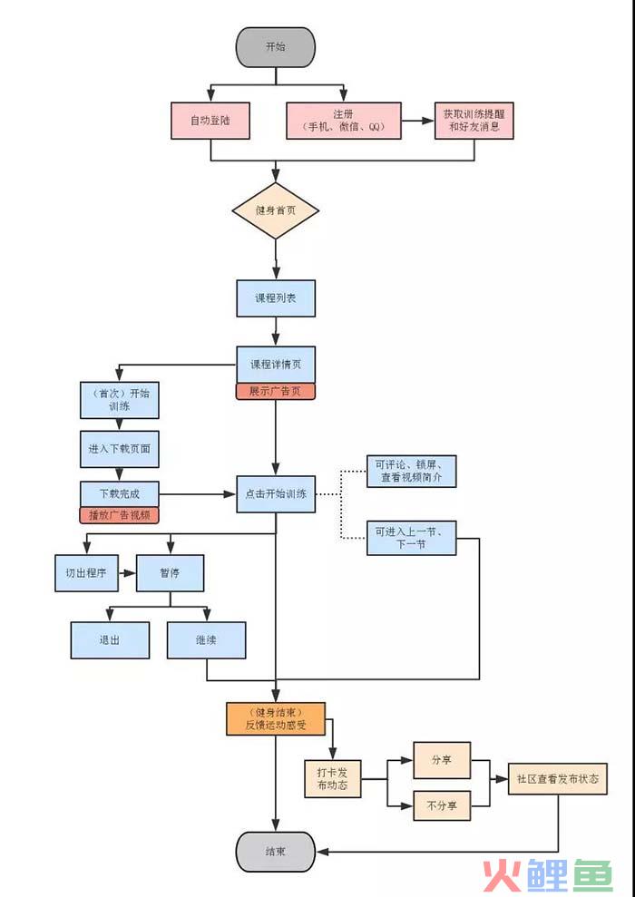 作为一款挑战型新产品,一开始要选择解决用户哪些核心需求,以及如何解决,提供什么样的功能能够更好的解决就是很关键的问题。现在复盘来看,从需求的大路径来看,就是两块:健身指导和健身社交。