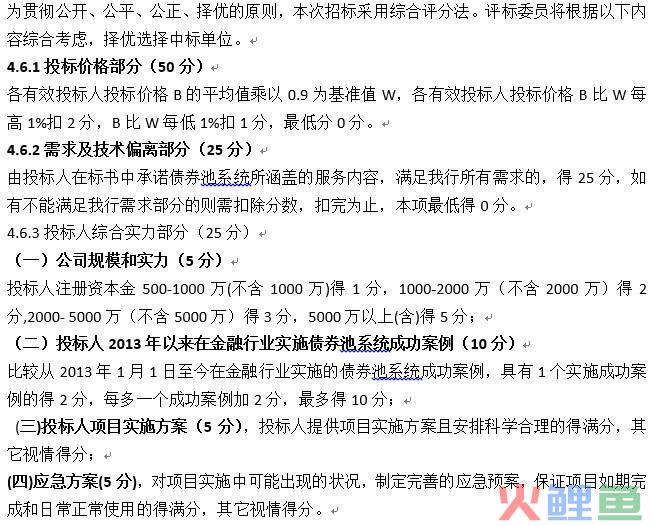 有些招标书上会写哪个部分得几分,哪个部分得几分,比如江苏紫金农商行的招标书: