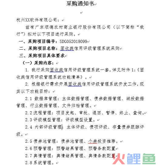 这是2018年8月28日广东顺德农商行发出的一份招标书,以下是他们的采购通知书: