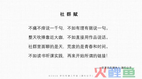 每天混社群的时间不要多于两个小时,多花时间读书听课写文实践积累自己的核心竞争力尤为重要。