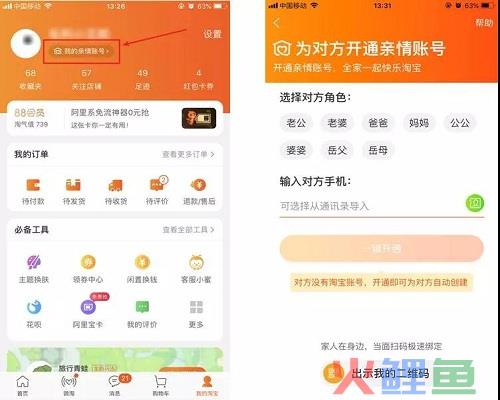 同样运用用户关系做增长还有淘宝的「亲情账户」。