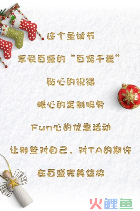 欢乐的圣诞节日氛围里,除了圣诞树和彩灯,更少不了祝福、贺卡和礼物。作为享誉全球的百货公司品牌,百盛针对不同人群量身打造"盛"诞大礼。无论面对的会员是时尚甜美的少女,或是追求生活品味的主妇;无论是热血青春的少年,或是儒雅大方的绅士,百盛在线上都会发出一张精致华丽的圣诞贺卡,及一份充满诚意的礼品。