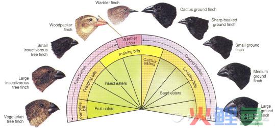 加拉帕戈斯的10种芬雀来自同一个祖先物种,如今占据了不同的生态位,互不重叠