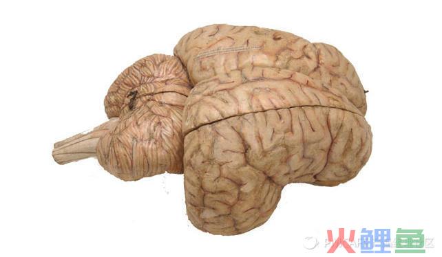 狗脑子,前方黄色的是嗅球,人的嗅球萎缩在脑底