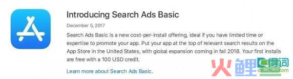 2017年12月6日,苹果官方宣布推出了Search Ads Basic竞价广告基础版。