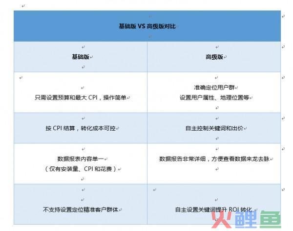 我们可以发现,基础版和高级版各有特点。但基础版和高级版的划分可以更好地方便不同类型、不同需求的开发者选择使用,基础版和高级版基于完全不同的投放模式、收费模式和操作流程,为CP提供不同的服务与功能。