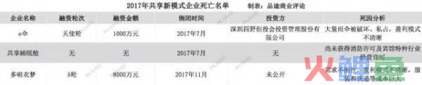 然而,2017年,共享系宣告进入死亡倒计时。截至目前,共有19家投身共享经济的企业宣告倒闭或终止服务。其中包括7家共享单车企业、2家共享汽车企业、7家共享充电宝企业、1家共享租衣企业、1家共享雨伞企业和1家共享睡眠仓企业。