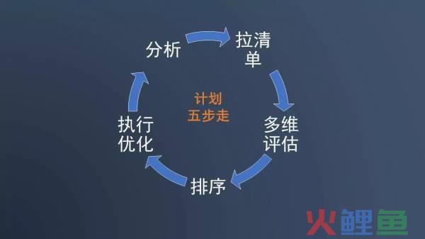 如果公司给你的资源有限,预算有限,精力有限,甚至你一个人就是一个团队时候,该怎么做呢?我的个人心得是:先拉清单,然后评估,做三个排序,最后才是执行和优化,是张循环图。