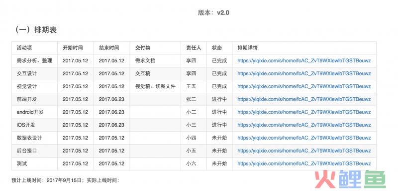 每次的大版本开发,最好对应有一个排期表(与开发沟通确认时间的安排),开发过程中,根据进度情况,适当调整时间安排。