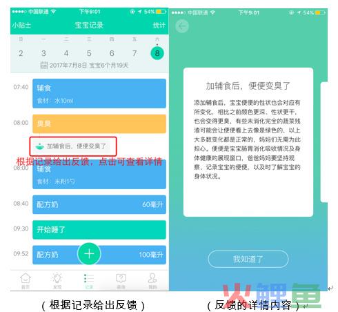 家长记录的都是自己的养育过程或结果,但家长很难判断这个过程或结果是否正确,而记录后反馈的数据,对于家长是具备指导意义的,清楚这种状态是否正常、以及接下来应该如何做。这种即时反馈也有助于家长坚持记录。