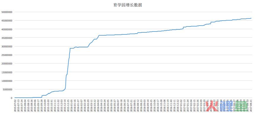 根据酷传的增长量截图可以看到,从上线至今,育学园曾经有三个快速增长节点,分别在“育儿知识手册全部上线、记录功能一对一健康指导上线、孕期知识和工具的上线”,经过几次快速增长,用户量增至三千多万。而从2016年4月开始增长趋缓,我认为主要原因在于崔医生的品牌红利结束,出现了增长瓶颈。