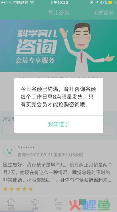 育学园一开始做的很克制,并不是所有的人都可以申请会员,每周仅开放少量的会员码。在探索新功能时,克制是很需要的,通过逐渐开放的过程,不断优化供应能力和质量。且又形成了一轮饥饿营销,显示出咨询服务是一项稀缺资源,一码难求更能表现出服务的特权价值。