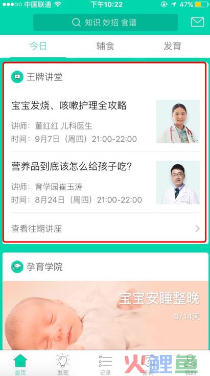 基于这样的背景,育学园选择“健康管理”为切入点,通过结构化的知识传递育儿内容,通过记录工具收集数据,并给予个性化的指导。