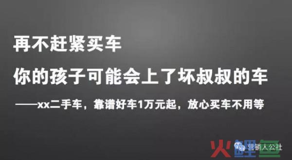 它其实是利用了顾客“害怕损失”的心理,把拖延症带来的后果具象化成可以直观感受到的具体损失——比如房子买不起了,孩子被人拐了,老婆跟人跑了等等