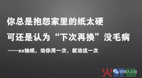 从这个销售逻辑出发,我们尝试给抽纸写一个文案,大家都知道,抽纸有个很大的问题,就是存在感低——即使发现了更好的产品,也不会投入很高的关注度