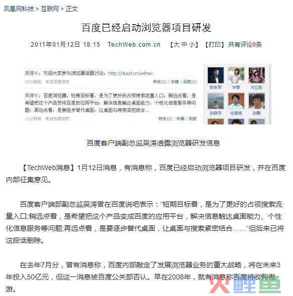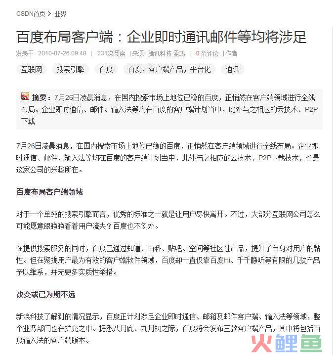 当时有媒体做了一些报道,说百度要做邮件之类的,可能当时邮件比较热,都希望百度做邮箱吧。我当时是觉得没必要,因为QQ邮箱已经成长起来了,优势和发展趋势明显,格局已定。