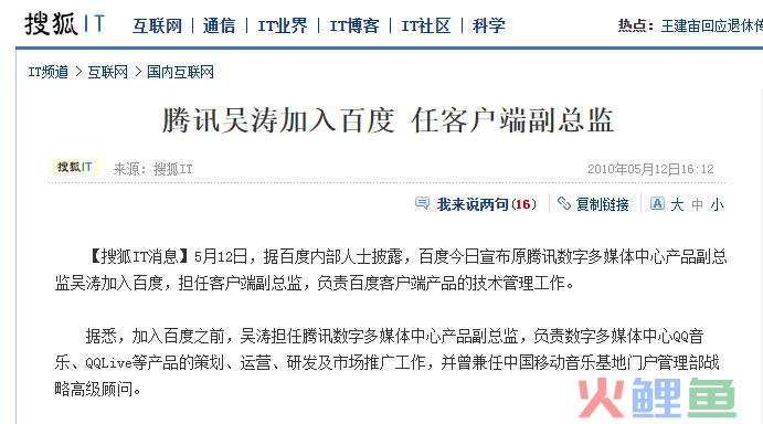 离开腾讯到百度,最重要的原因是要回北京准备结婚。